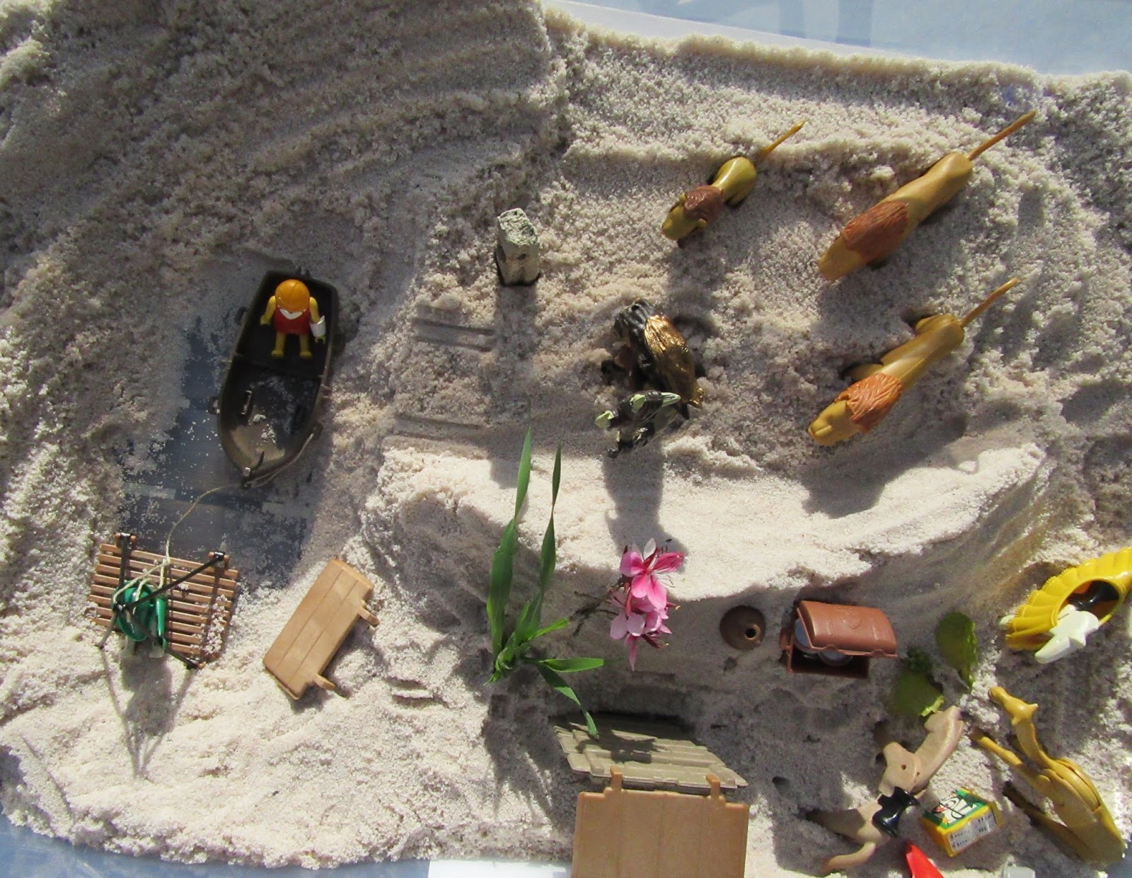 Así que seguí investigando, y gracias a Google, encontré varios artículos, tesinas, páginas de organizaciones internacionales en diversos idiomas. En el mundo anglosajón la Técnica de la Caja de Arena , Sandplay o Sandtray tiene mucha relevancia. Existen incluso tiendas online que venden conjuntos de miniaturas y kits básicos para aquellos que quieran comenzar.